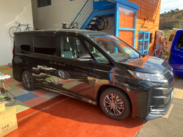 TEIN車高調を取り付けながら、カーオーディオのインストールを進めている95NOAH。