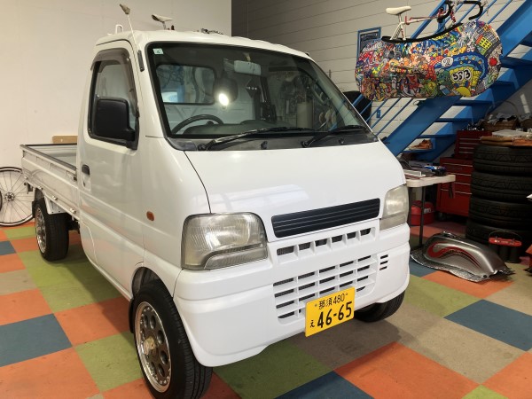フロント周りを変えてくれと前から頼まれていたのは、ちょっとでも曲がろうとすると、デフがゴリゴリする運転し難いキャリーの軽トラック。