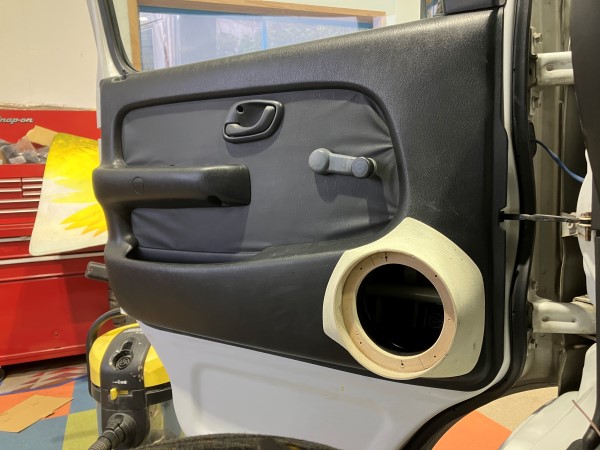 ドアパネルカット、防振制振、ケーブル引き回し、そしてインナーバッフル製作からのアウターパネル製作。