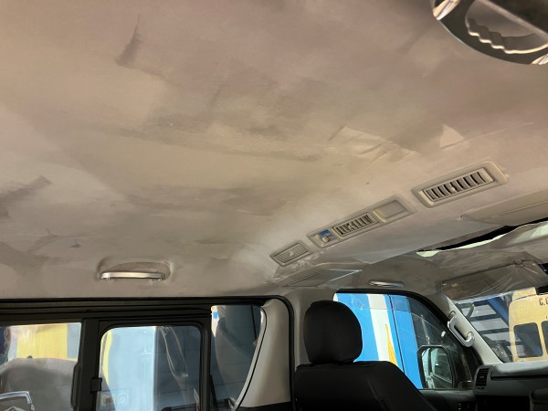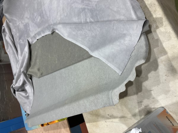 ハイエースの純正ライナー生地は硬くて巻き込みにくいため、新たな厚手スウェード生地にて張り替えてます。