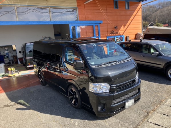 ハイエースには、後付けサンルーフがよく似合います。室内が一気に明るくなりますからね!
