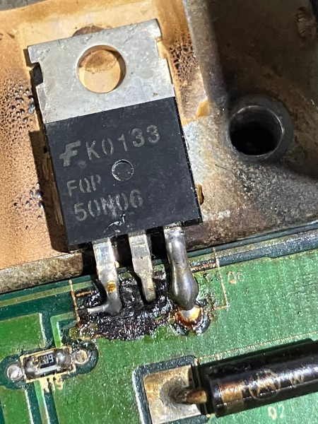 MOSFETが焼けて片チャンネル音が出ないロックフォードのオールドスクールアンプ。