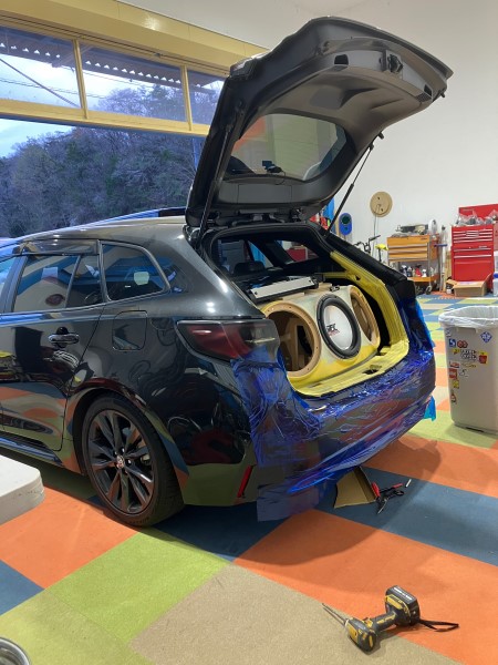 BOXが概ねできたので、アンプを載せてその外郭デザインを考えながら☕️珈琲をすする。
