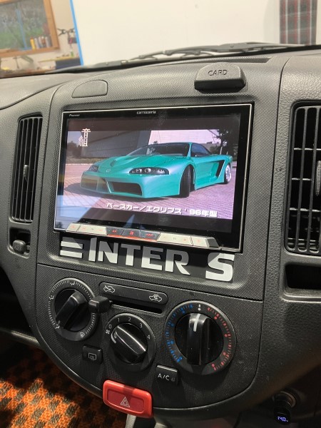 このNV150標準が3DINサイズなため8インチを収めるには横幅を拡げれば比較的簡単で、下段の隙間をナンバーフレームを埋め込み『加工したんだ感』を出しました^ ^