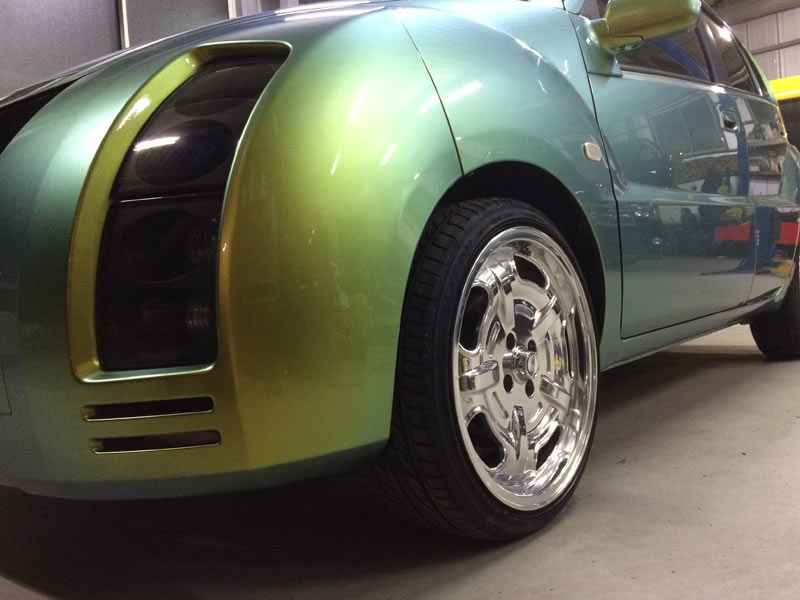 ホイールの出幅をボディーに合わせるためスチールでオーバーフェンダーを製作。